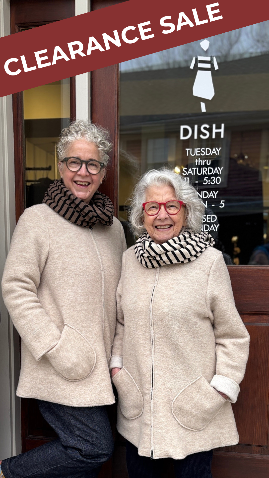 We are Sara and Keri, a mother-daughter duo with a keen sense of style and a strong point of view. Our shop is a tightly curated assortment of beautiful yet functional clothing for a wide range of ages, bodies and stages of life. For more than 20 years, we have brought unique, sophisticated, and international clothing designers to the Rhode Island community. At DISH, we want you to feel your best, strongest and most confident.