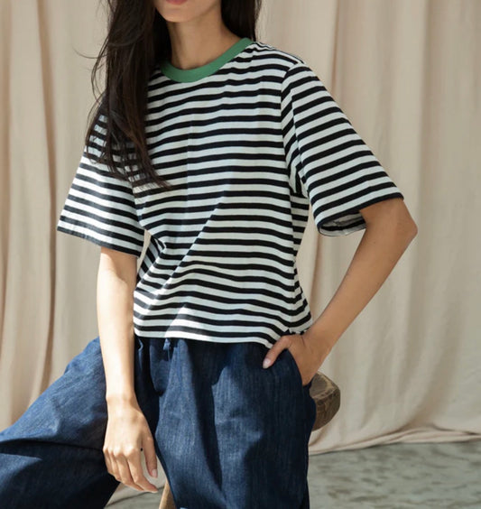 Beaumont Organic ~ Aukai-Sue Organic Cotton Top - Olive/White Stripe