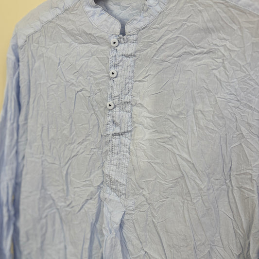 Pas de Calais ~ Washed Cotton Crinkle Stand Collar Shirt - Saxe Blue