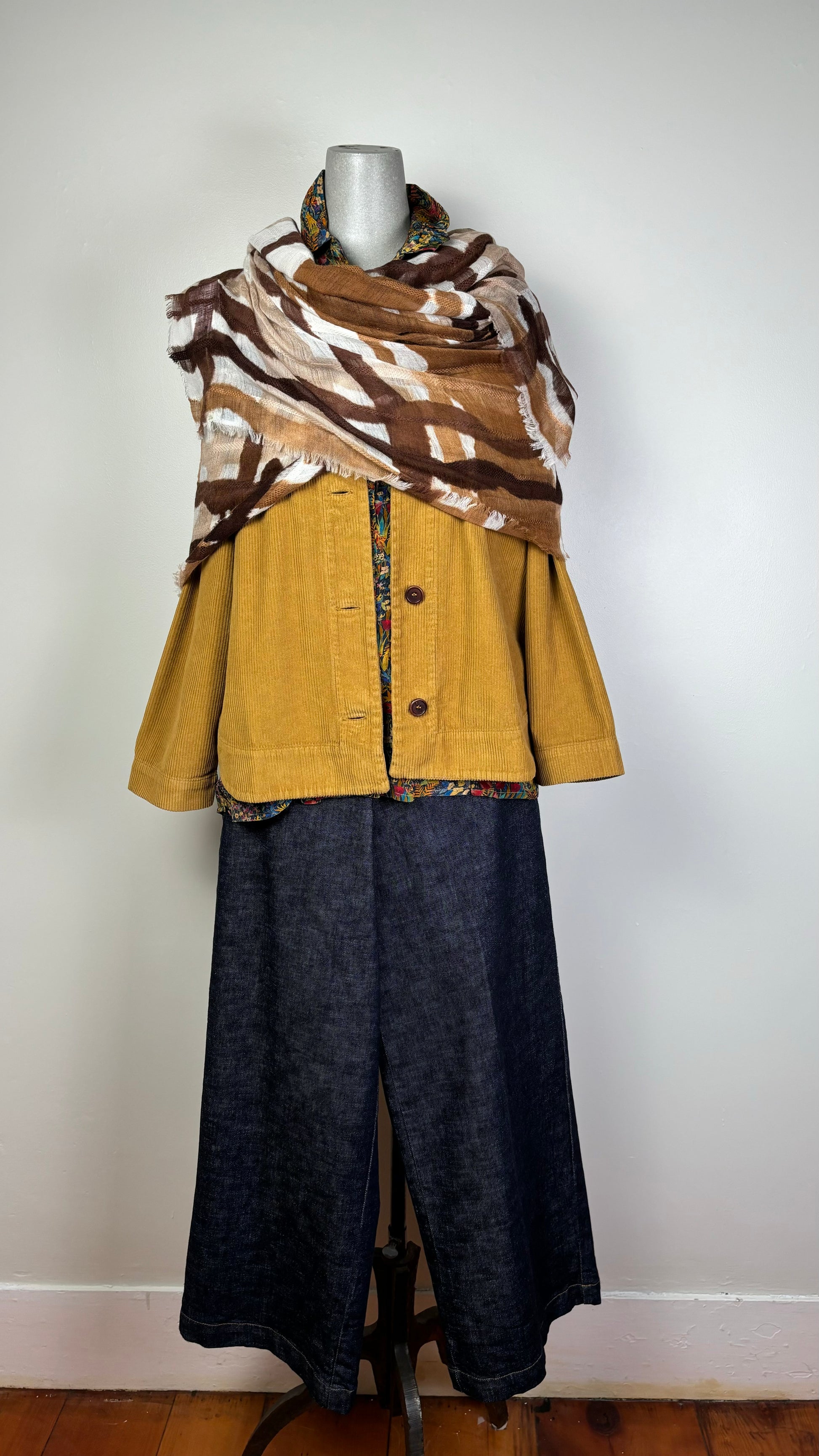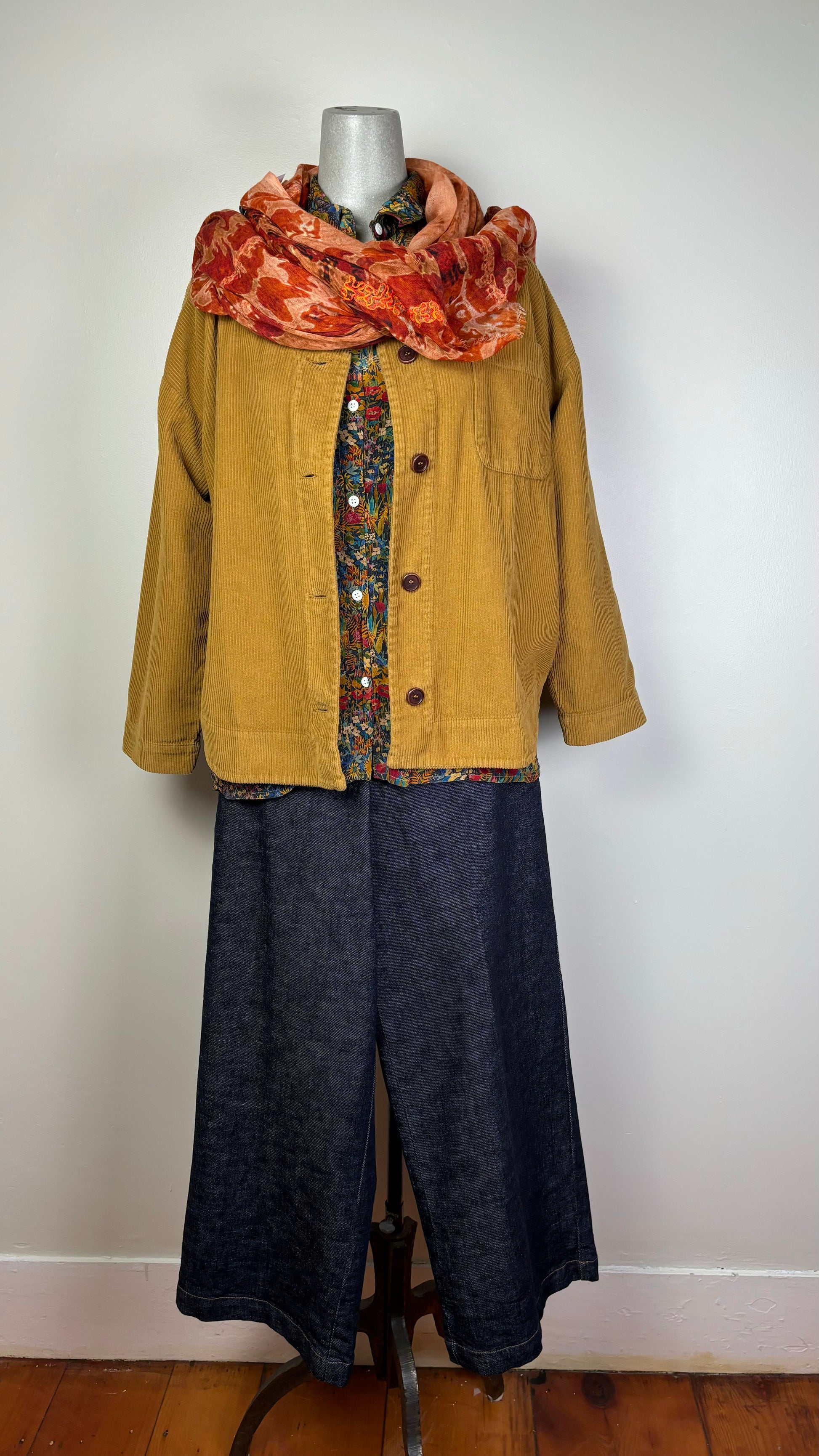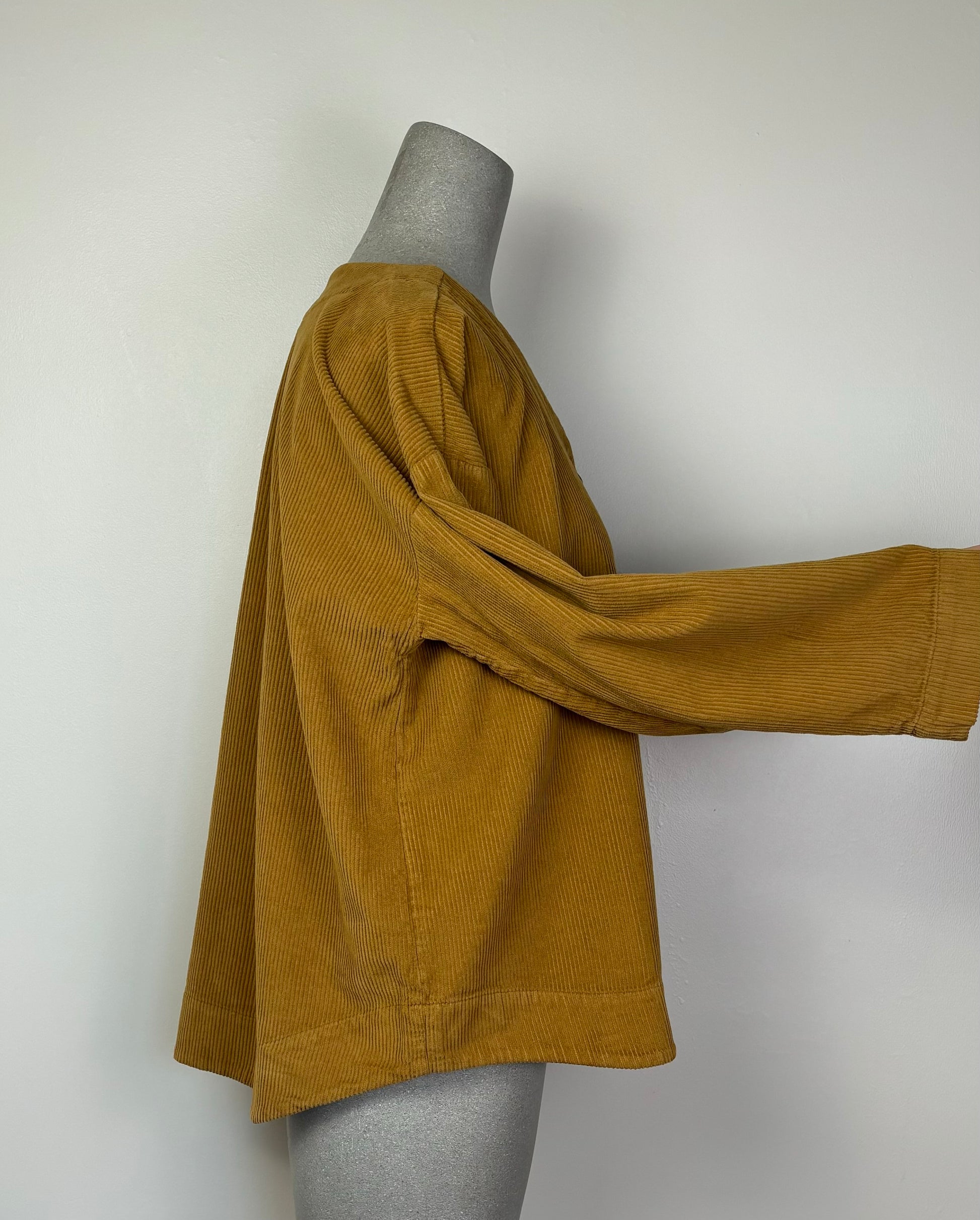 The Acer Shirt in organic cotton corduroy is a boxy V-neck style with a button down front and full length sleeves. Features a front patch pocket on the left chest.