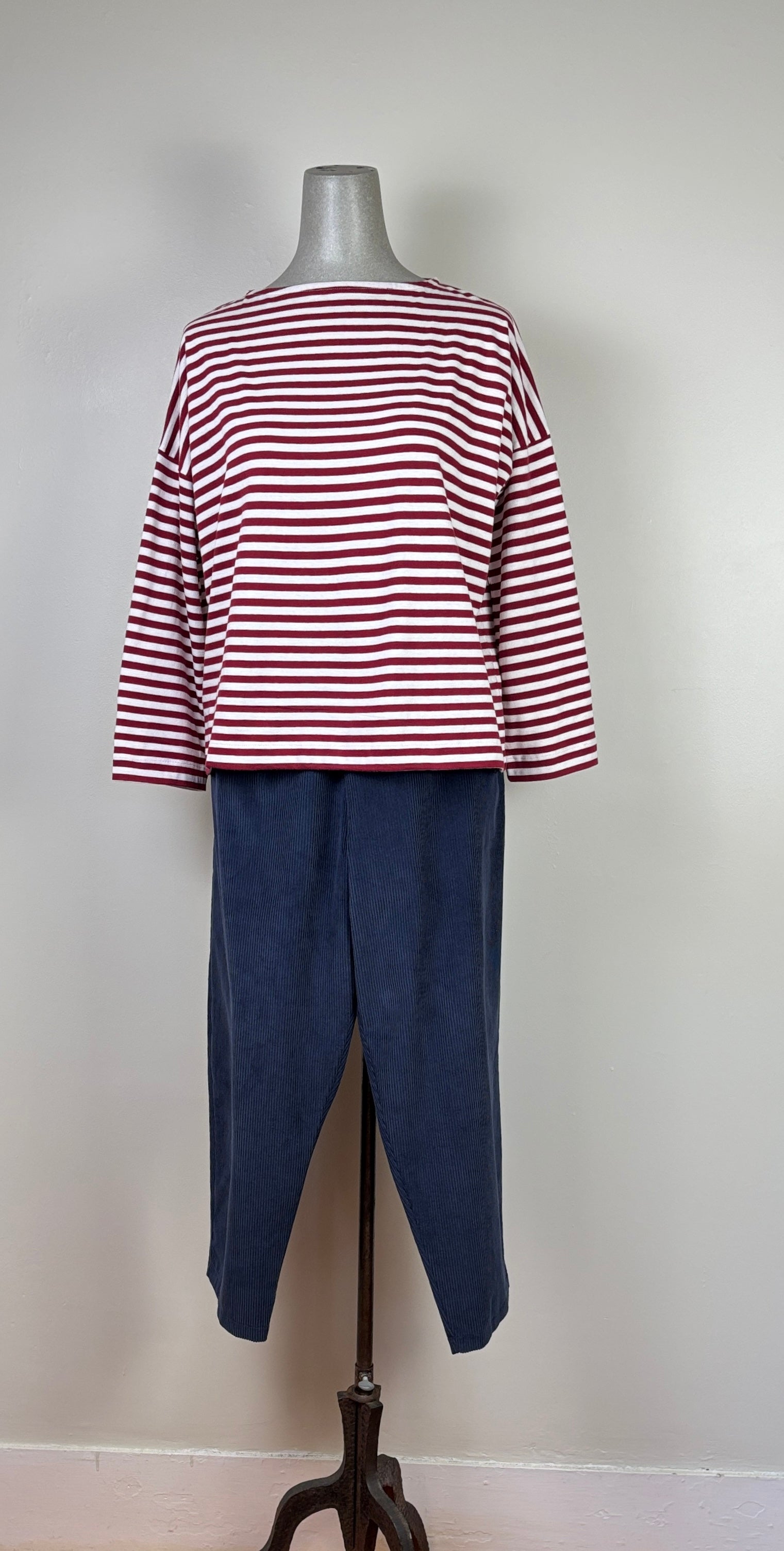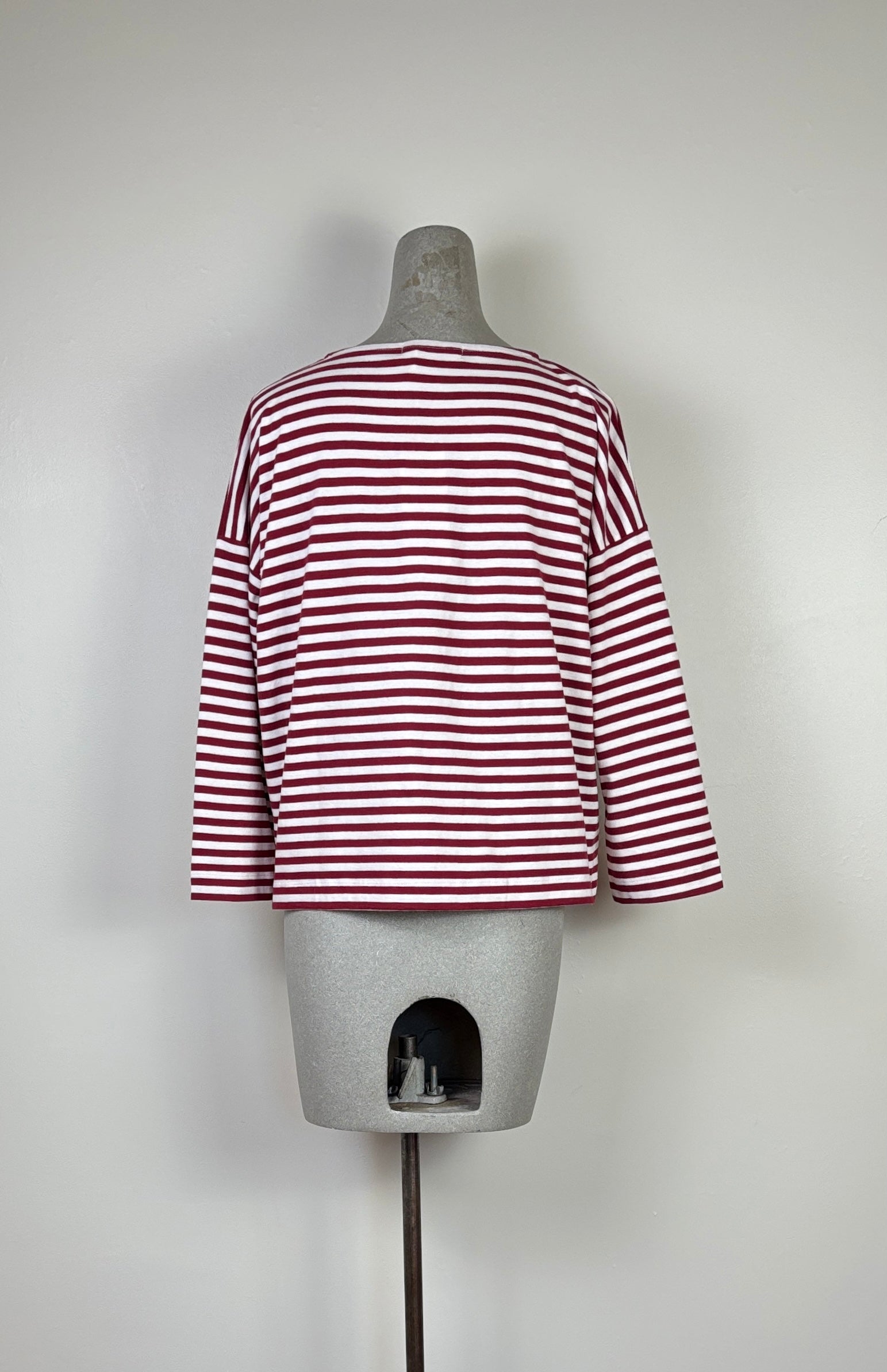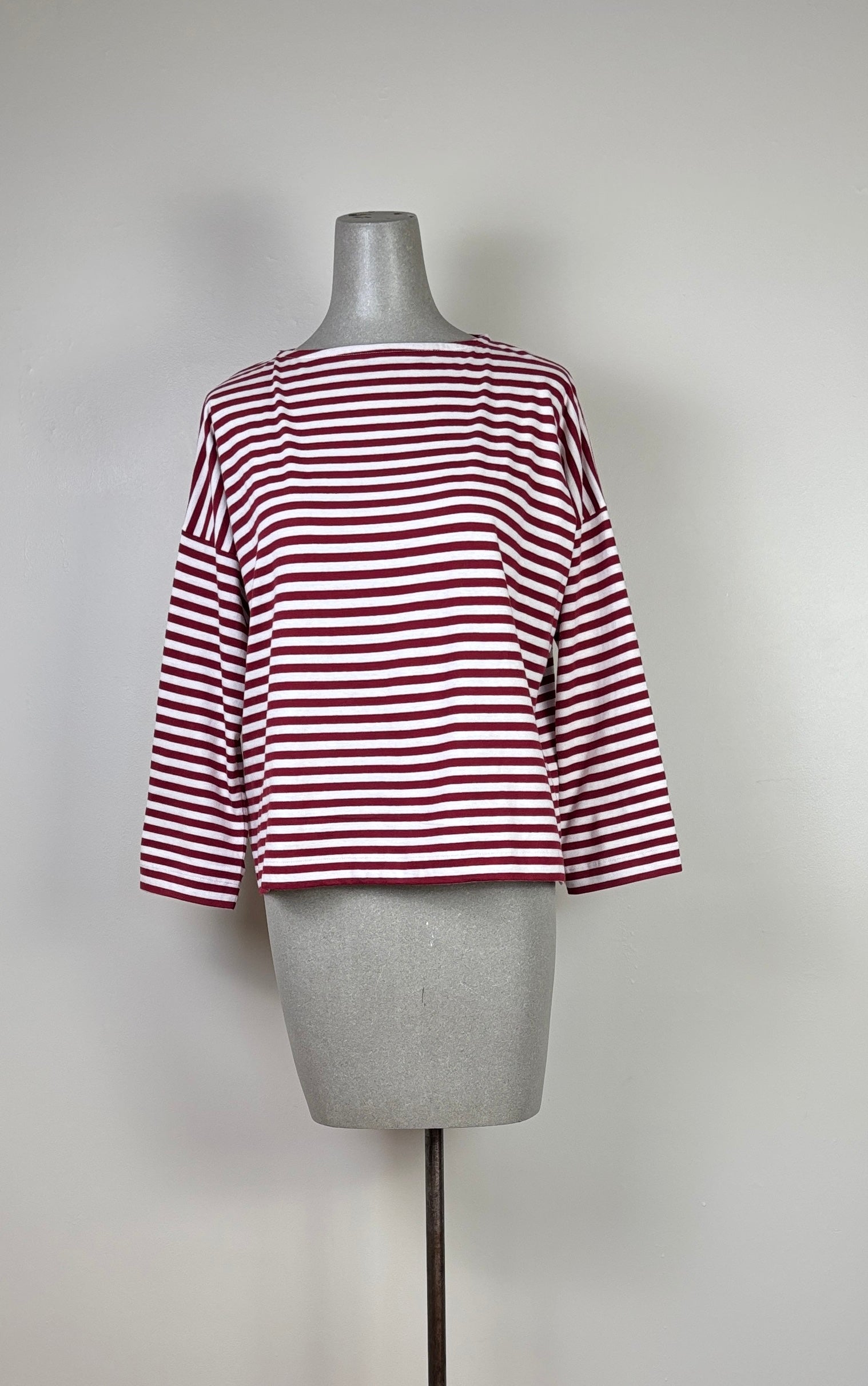Beaumont Organic ~ Leia-Sue Striped Tee - Burgundy/Off White