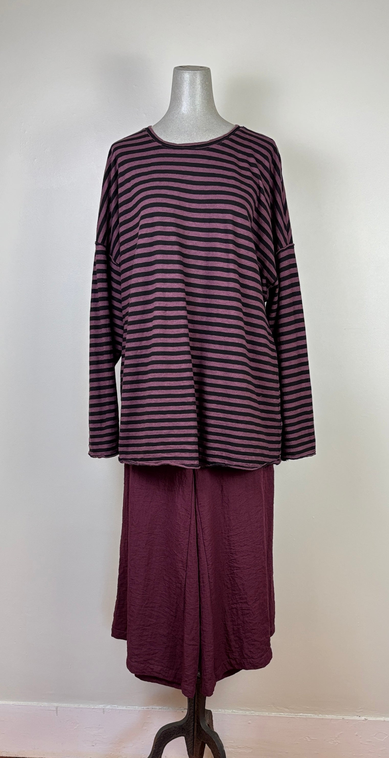 From the fall parachute collection, a pull on pant with a flat front and elasticated back waistband. A single tuck pleated patch pocket sits on the outside of the left leg. Legs are wide and ankle length.