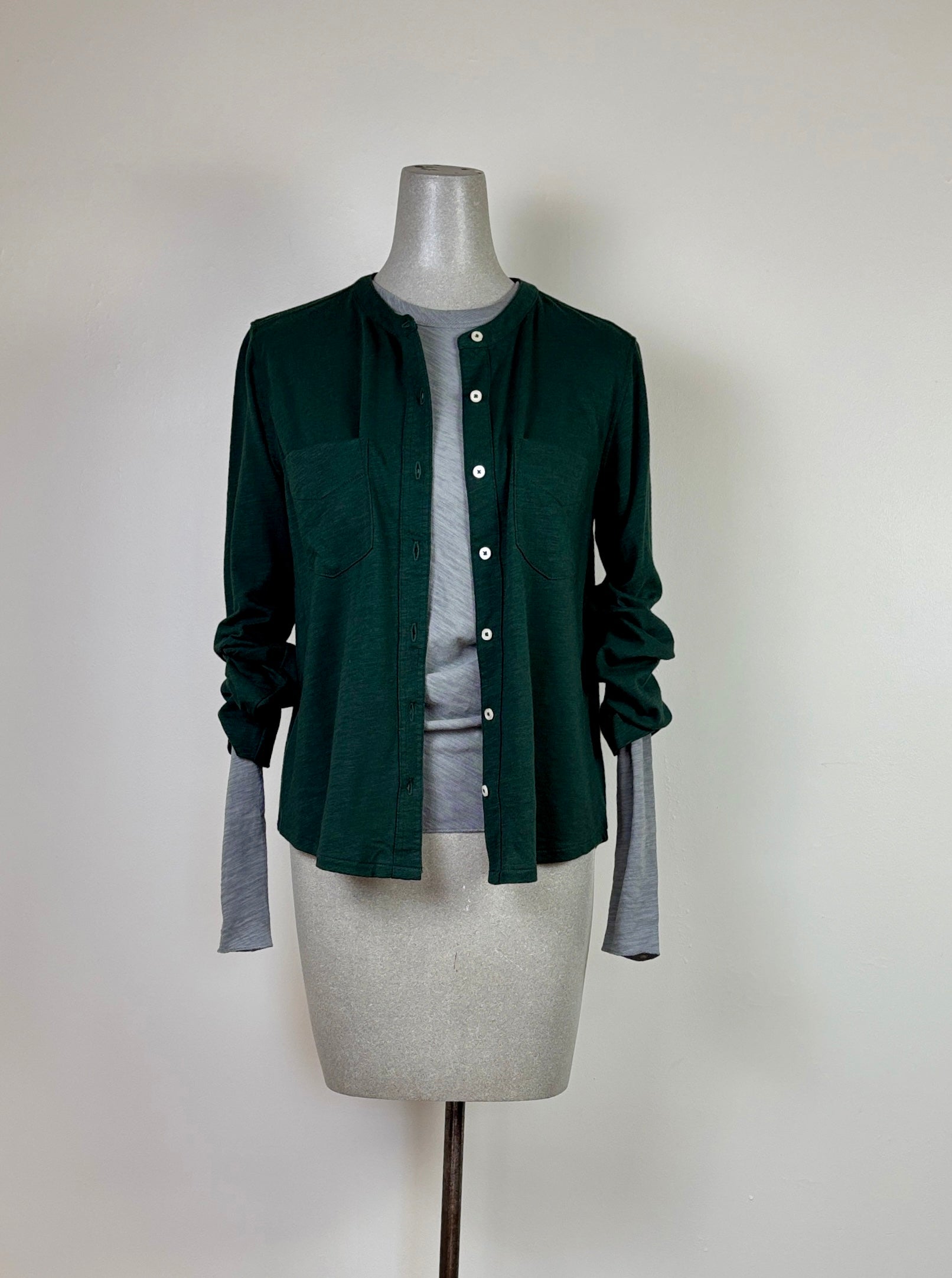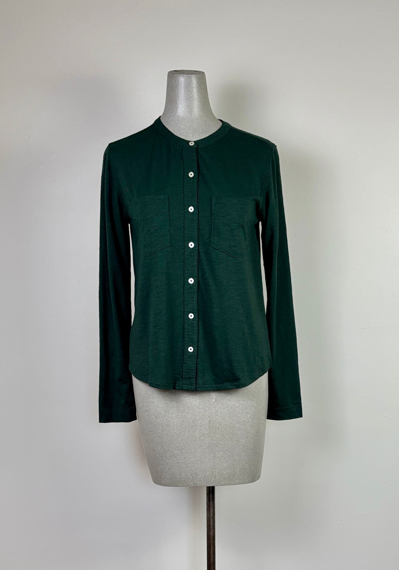 Lilla P. ~ Mandarin Collar Button Down - Spruce