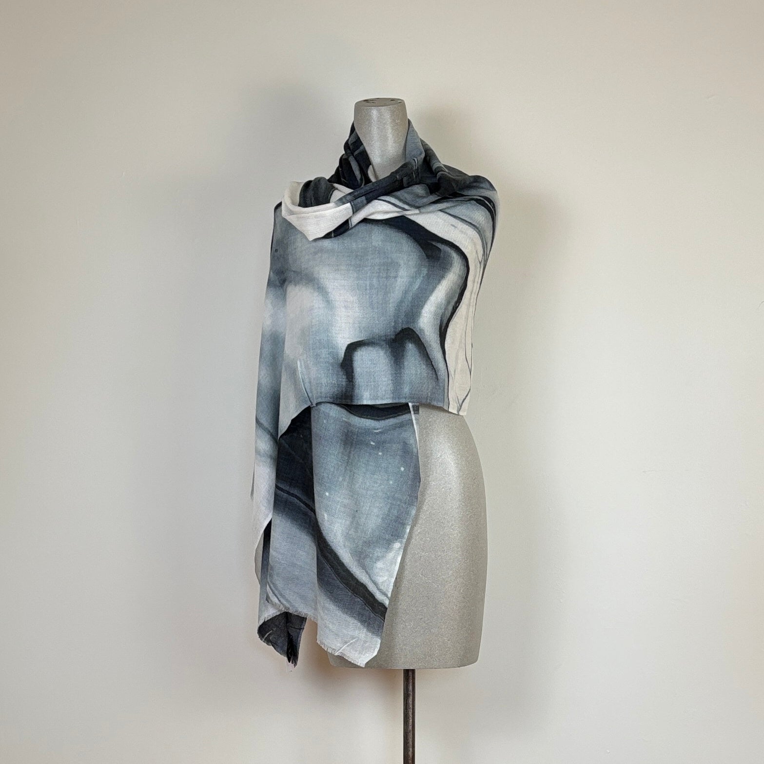 MSquare ~ Printed Cashmere Scarf - Black/Gray