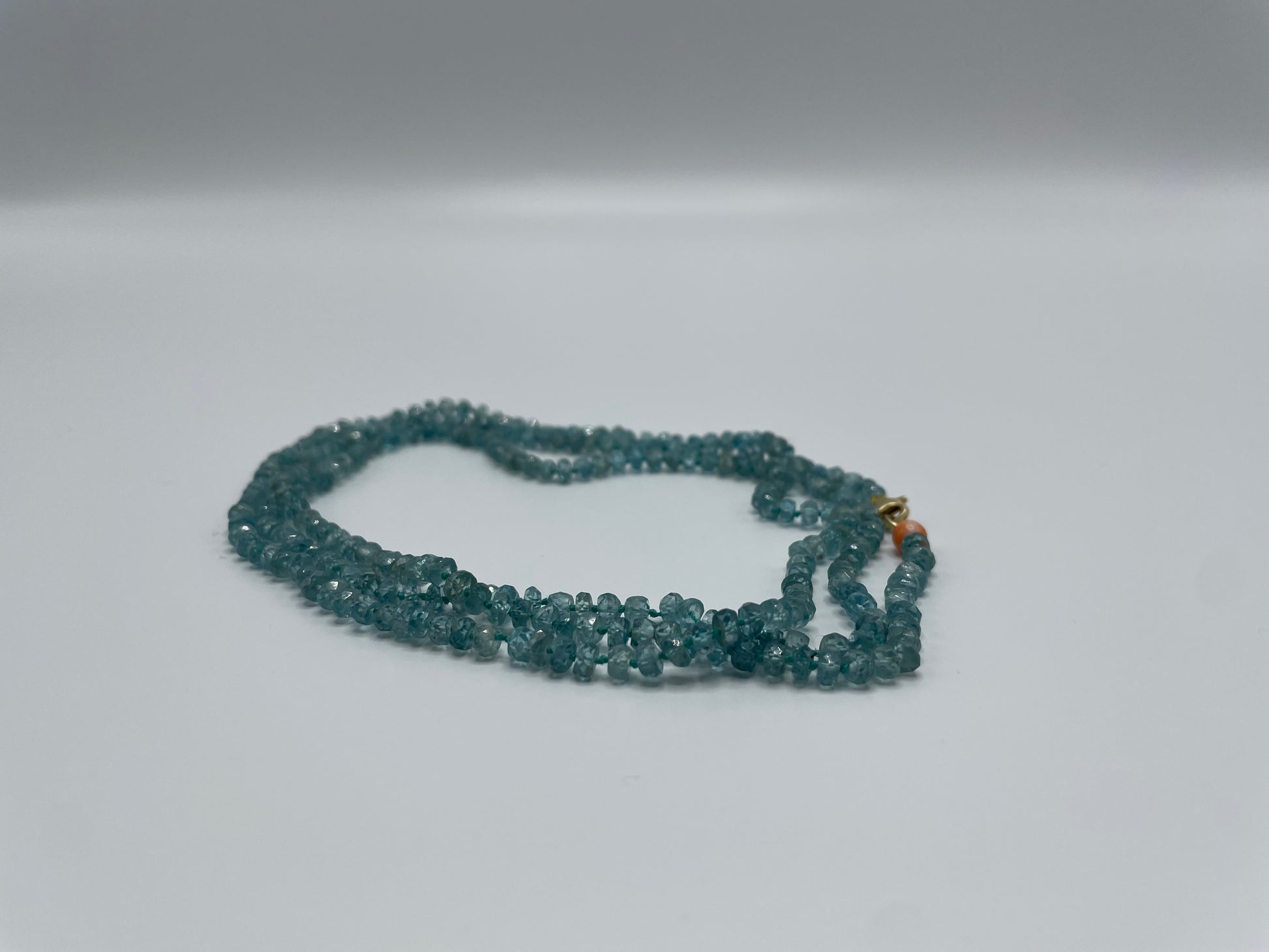 Mini faceted natural blue zircons with a single coral accent bead and 14K gold claw clasp.Necklace measures 35.5”Hand made in Rhode Island. One-of-a-kindRebecca Brenner is a 1984 graduate of Rhode Island School of Design with an MFA in jewelry design. She is currently making fine jewelry in 14k and 18k gold using unique and precious gemstones. Rebecca’s designs celebrate color and the harmonious interplay of hues found in nature. She sources stones of unconventional shapes to create her one-of-a-kind pieces, including earrings, necklaces and baubles. With a commitment to timelessness, her work exudes individuality reflecting her artistic vision and commitment to craftsmanship.