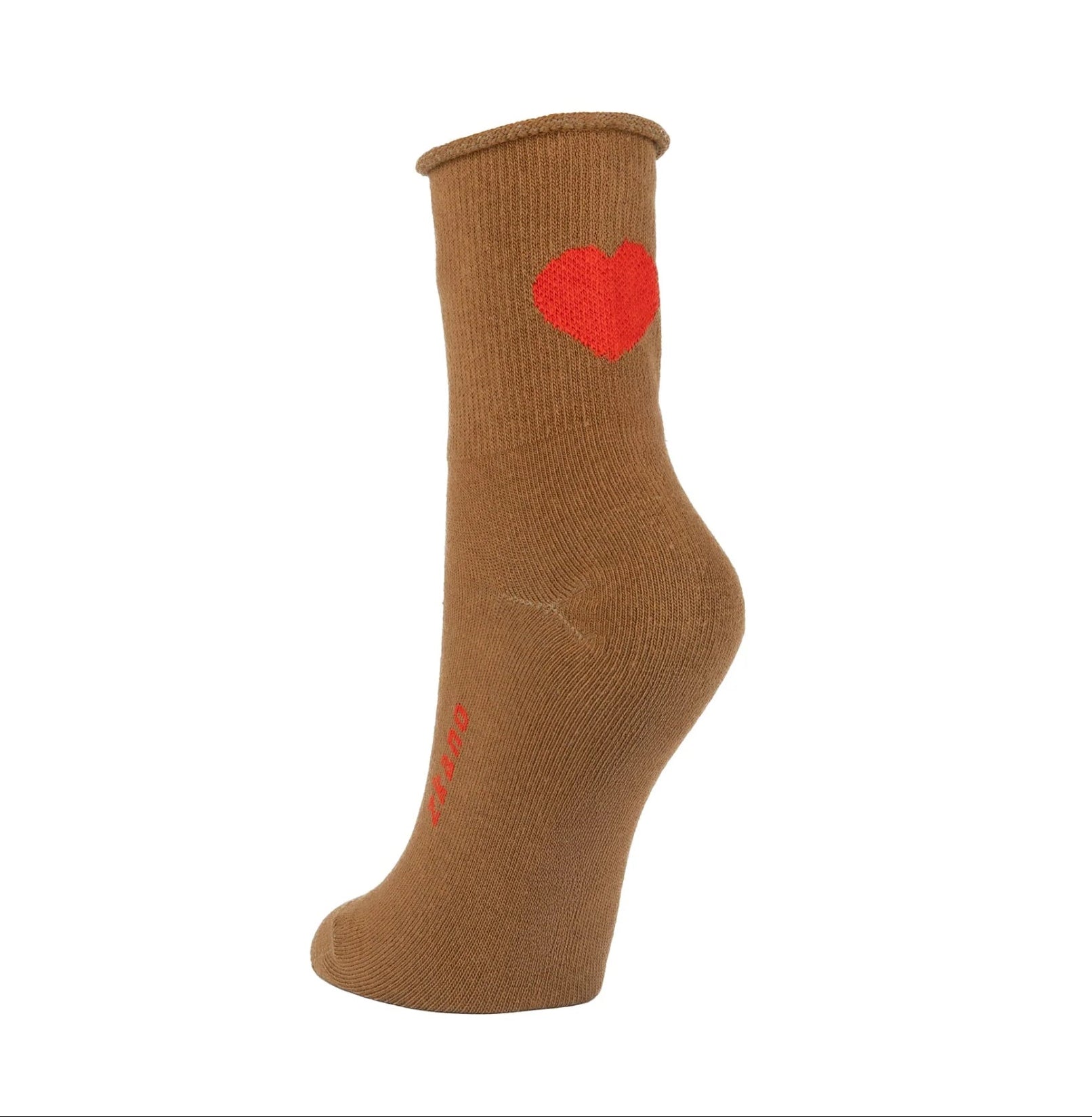Zkano ~ Floating Heart, Short Crew, Organic Cotton Socks - Chestnut